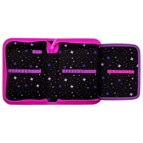 Материал снаружи и внутри - полиэстер с цветной печатью, ярким дизайном. Основа пенала - плотный картон. Такая конструкция отличается износостойкостью и прочностью, поможет защитить канцелярские принадлежности от повреждений.