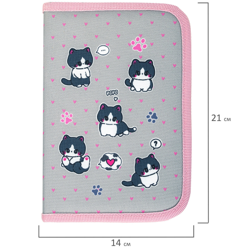 Пенал BRAUBERG, 1 отделение, полиэстер, 21х14 см, Cat patches, 272327