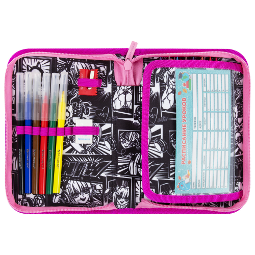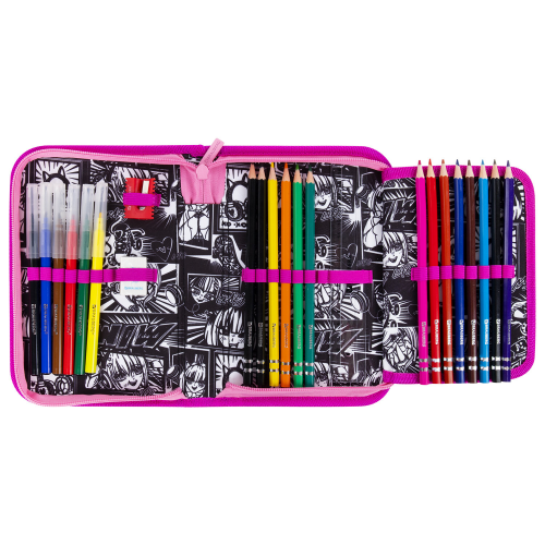 Пенал BRAUBERG с наполнением, 1 отд, 1 откидная планка, 24 предмета, Anime movie, 272349
