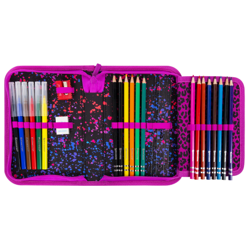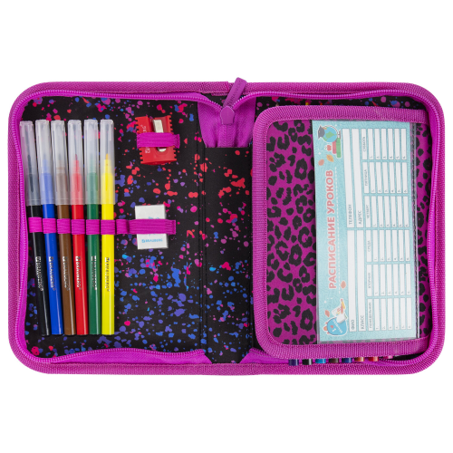 Пенал BRAUBERG с наполнением, 1 отд, 1 откидная планка, 24 предмета, Leopard, 272350