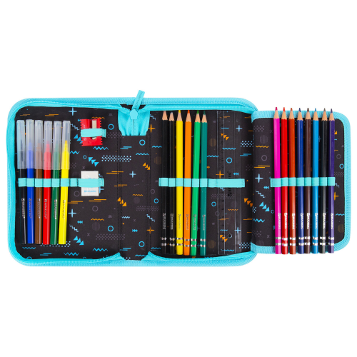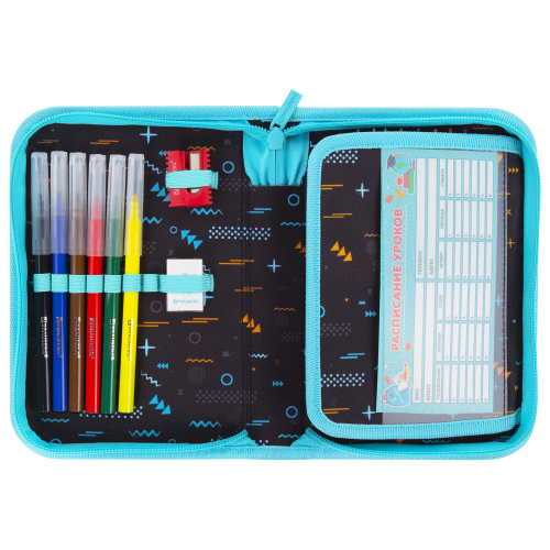 Пенал BRAUBERG с наполнением, 1 отд, 1 откидная планка, 24 предмета, Play sleep repeat, 272353