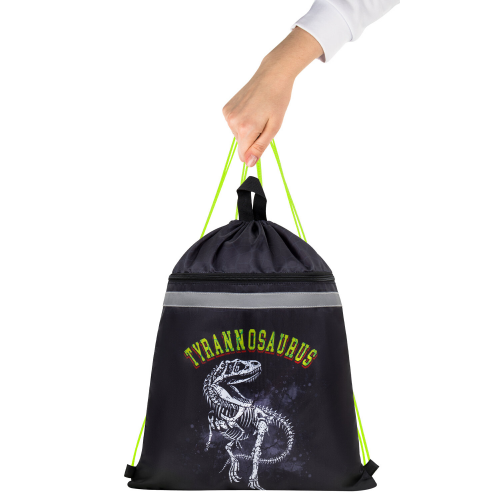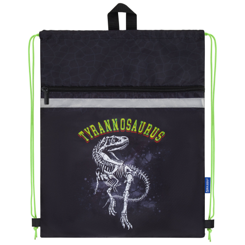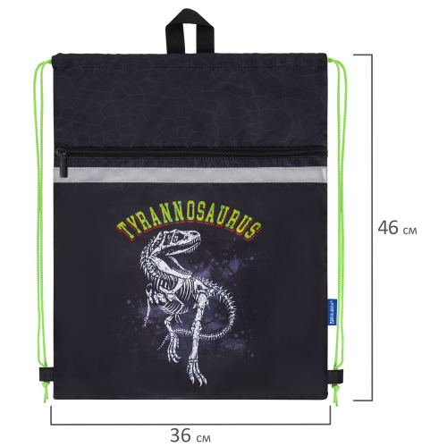 Мешок для обуви BRAUBERG, с петлей, светоотражающая полоса, 2 отделения, 46х36 см, Tyrannosaur, 272399
