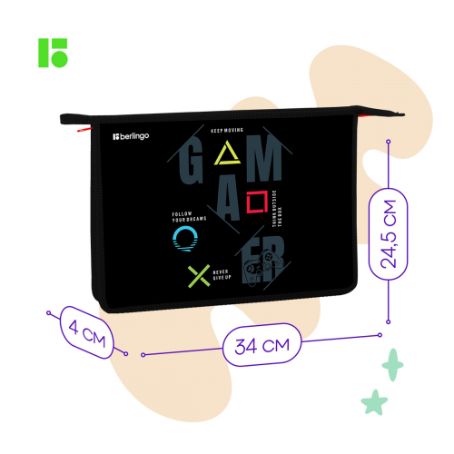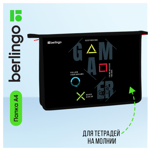 Папка Berlingo "Game on" формата А4 предназначена для хранения тетрадей и других учебных принадлежностей. Изделие размером 340*245*40 мм состоит из одного отделения. Застёжка-молния сверху защищает содержимое от грязи и влаги. Края папки имеют тканевую окантовку. Изготовлена из высококачественного пластика. Дизайн папки понравится мальчику. • Формат: А4; • Материал: пластик; • Количество отделений: 1; • Тип застёжки: молния.