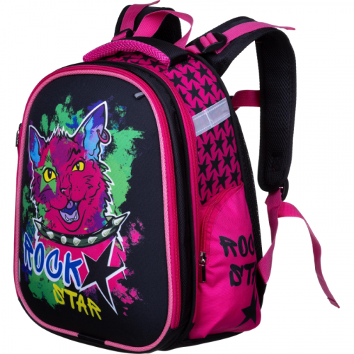 Ранец Комус Класс Joy Rock Star черный рок звезда с двумя отделениями. Комус Класс Joy Rock Star - это яркий и функциональный ранец, который обеспечит удобные хранение и перенос школьных принадлежностей. Предназначается для девочек. Особенности и преимущества ранца: стильный дизайн - яркий принт кошки в стиле 'рок звезды'. Прочность и износостойкость: каркас и дно ранца изготовлены из прочного полиэстера, который выдерживает повседневную эксплуатацию в течение длительного периода. Функциональность: два отделения и два кармана позволяют удобно разложить все необходимые школьные предметы. Безопасность: светоотражающие элементы, расположенные по бокам ранца, обеспечивают видимость в темное время суток, делая передвижение владельца более безопасным. Комфорт: эргономичная спинка и регулируемые плечевые ремни обеспечивают комфортную носку ранца. Размер: 310x380x200 миллиметров.