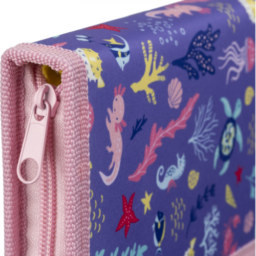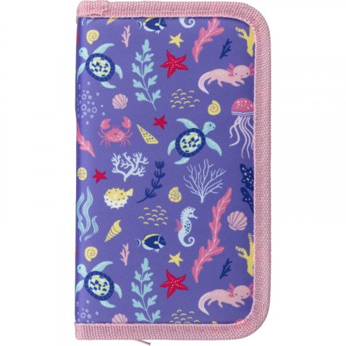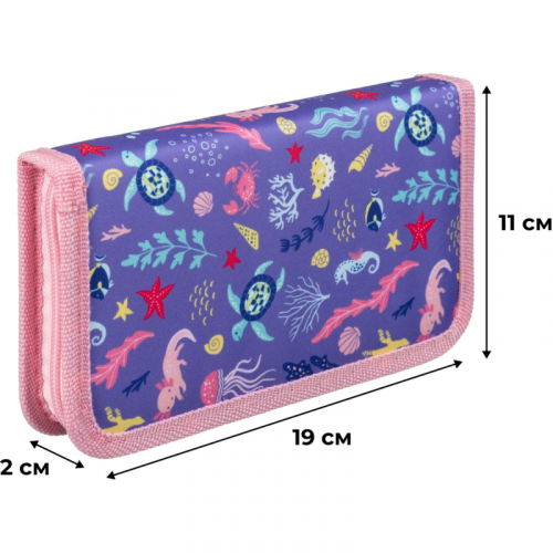 Пенал Комус класс Аксолотль - тканевый контейнер из полиэстера для хранения и транспортировки канцелярских принадлежностей. Дизайн пенала выполнен в фиолетовом цвете с изображением аксолотли. Предназначается для девочек младших и средних классов школы. Пенал размером 190x110x20мм имеет одну секцию (без наполнения). В нее с легкостью поместятся все необходимые для обучения инструменты.