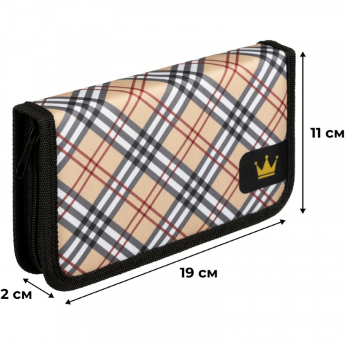 Пенал Комус класс Queen - тканевый контейнер из полиэстера для хранения и транспортировки канцелярских принадлежностей. Дизайн пенала выполнен в бежевом цвете с изображением короны. Предназначается для девочек младших и средних классов школы. Пенал размером 190x110x20мм имеет одну секцию (без наполнения). В нее с легкостью поместятся все необходимые для обучения инструменты.