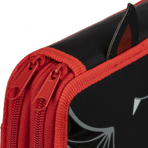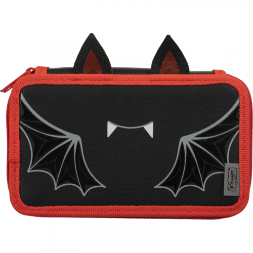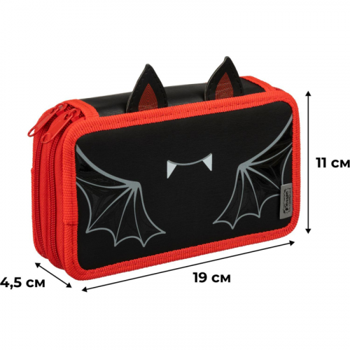 Пенал Комус Класс двухсекционный Летучая мышь - вместительный контейнер из экокожи для хранения и транспортировки канцелярских атрибутов. Предназначается для девочек, учащихся в дошкольных и младших классах школы. Пенал размером 190x110x45 миллиметров имеет два просторных отделения. Он сделан в форме 'книжки', что придает ему особую компактность и удобство в использовании. Дизайн пенала выполнен в черном цвете с изображением летучей мыши. Пенал Комус Класс Летучая мышь - стильный и практичный выбор для учебы. В него с легкостью поместятся и будут надежно храниться все необходимые для обучения инструменты. В товар не входит дополнительное наполнение. В рамках ребрендинга производится перевод данного артикула с ТМ №1School на ТМ Комус Класс с сохранением всех потребительских характеристик товара. На переходный период допускается поставка данной продукции в двух вариантах дизайна.