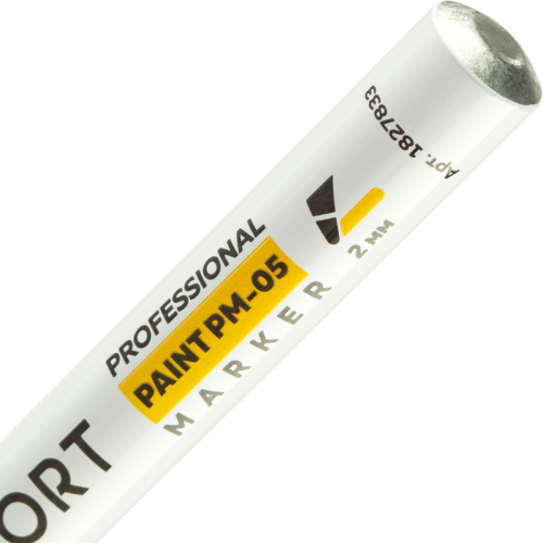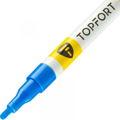 Маркер промышленный TOPFORT Paint для универсальной маркировки синий (2 мм) предназначен для промышленной непрозрачной маркировки металла, стекла, пластика, дерева, резины, камня, картона, кирпича, текстиля, кожи (материал), бумаги, бетона. Краска содержит высококонцентрированный пигмент, хорошо ложится на гладкие и шероховатые поверхности. Может применяться для письма на жирных, пыльных, грязных поверхностях. После высыхания лаковые чернила устойчивы к воздействию света, атмосферных осадков, смазочных материалов, механическому истиранию. Цвет чернил - синий, диаметр пишущего узла - 2 мм. Размеры маркера: диаметр 11 мм, длина 130 мм. Особенности: - Краска на нитро-основе РМ-05 (Великобритания). - Без ксилола и толуола. - Устойчивый к износу усиленный акриловый круглый наконечник (Япония). - Толщина линии 2 мм. - Материал корпуса - алюминий. - Клапанный механизм пишущего узла исключает растекание и разбрызгивание краски, преждевременное пересыхание маркера. - Температурный режим использования : от 0 до +40 °С. - Температурный режим хранения: от 0 до +60 °С. - Температурная устойчивость надписи: от -60 до +350 °С. Инструкция по применению: 1. Перед использованием интенсивно встряхнуть с закрытым колпачком. 2. Снимите колпачок, прижмите наконечник к поверхности, надавите до упора и удерживайте пока не проступит краска. 3. Применять после того как убедитесь, что наконечник полностью пропитан краской исходного цвета. Избегайте чрезмерного давления на наконечник при дальнейшем использовании. Предостережения: плотно закрывайте колпачок после применения, держать маркер вдали от источников тепла и воспламенения.