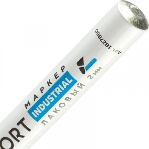 Маркер промышленный TOPFORT Industrial для универсальной маркировки белый (2 мм) предназначен для промышленной непрозрачной маркировки металла, стекла, пластика, дерева, резины, камня, картона, кирпича, текстиля, кожи (материал), бумаги, бетона. Краска содержит высококонцентрированный пигмент, хорошо ложится на гладкие и шероховатые поверхности. Может применяться для письма на жирных, пыльных, грязных поверхностях. После высыхания лаковые чернила устойчивы к воздействию света, атмосферных осадков, смазочных материалов, механическому истиранию. Создает стойкую линию толщиной 2 мм. Длина маркера - 130 мм. Цвет чернил : белый. Особенности: - Краска на усиленной нитро-основе РМ-14 (Великобритания). Без ксилола и толуола. - Устойчивый к износу усиленный акриловый круглый наконечник (Япония). - Толщина линии 2 мм. - Материал корпуса - алюминий. - Температурный режим использования : от 0 до +40 °С. - Температурный режим хранения: от 0 до +60 °С. - Температурная устойчивость надписи: от -60 до +350 °С. Инструкция по применению: 1. Перед использованием интенсивно встряхните маркер с закрытым колпачком. 2. Снимите колпачок, прижмите наконечник к поверхности, надавите до упора и удерживайте пока не проступит краска. 3. Применять после того как убедитесь, что наконечник полностью пропитан краской исходного цвета. Избегайте чрезмерного давления на наконечник при дальнейшем использовании. Предостережения: плотно закрывайте колпачок после применения, держать маркер вдали от источников тепла и воспламенения.