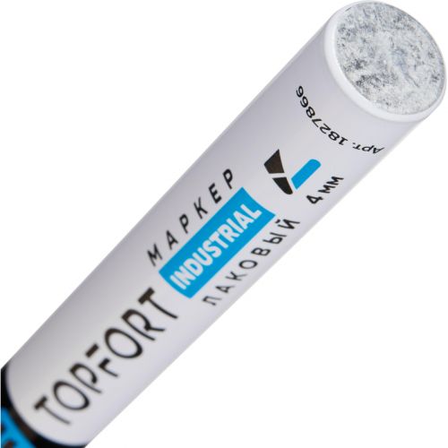 Маркер промышленный TOPFORT Industrial для универсальной маркировки белый (4 мм) предназначен для промышленной непрозрачной маркировки металла, стекла, пластика, дерева, резины, камня, картона, кирпича, текстиля, кожи (материал), бумаги, бетона. Краска содержит высококонцентрированный пигмент, хорошо ложится на гладкие и шероховатые поверхности. Может применяться для письма на жирных, пыльных, грязных поверхностях. После высыхания лаковые чернила устойчивы к воздействию света, атмосферных осадков, смазочных материалов, механическому истиранию. Создает стойкую линию толщиной 4 мм. Длина маркера - 143 мм. Цвет чернил : белый. Особенности: - Краска на усиленной нитро-основе РМ-14 (Великобритания). Без ксилола и толуола. - Устойчивый к износу усиленный акриловый круглый наконечник (Япония). - Толщина линии 4 мм. - Материал корпуса - алюминий. - Температурный режим использования : от 0 до +40 °С. - Температурный режим хранения: от 0 до +60 °С. - Температурная устойчивость надписи: от -60 до +350 °С. Инструкция по применению: 1. Перед использованием интенсивно встряхните маркер с закрытым колпачком. 2. Снимите колпачок, прижмите наконечник к поверхности, надавите до упора и удерживайте пока не проступит краска. 3. Применять после того как убедитесь, что наконечник полностью пропитан краской исходного цвета. Избегайте чрезмерного давления на наконечник при дальнейшем использовании. Предостережения: плотно закрывайте колпачок после применения, держать маркер вдали от источников тепла и воспламенения.