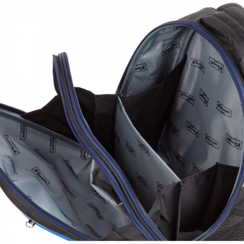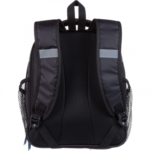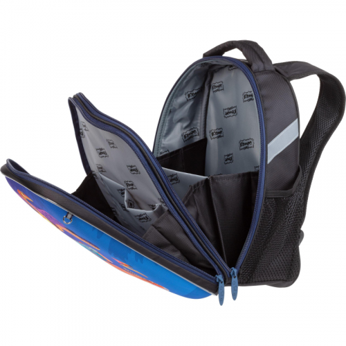 Ранец для мальчиков эргономичной обтекаемой формы. Жесткий каркас. Анатомическая спинка. Ранец выполнен из полиэстера. Ранец имеет два отдела на молнии. В основном отделении - гибкая перегородка, предназначенная для удобного хранения книг и тетрадей, и прозрачный карман с вкладышем для расписания уроков. Во втором - сетчатый карман и карман-органайзер. Благодаря устойчивому дну и ножкам ребенку будет удобно находить нужные учебники и тетради. Боковые карманы с сеточкой подходят для переноски маленькой бутылочки с водой и прочих небольших аксессуаров. Широкие удобные лямки из воздухообменного сетчатого материала регулируются по длине и по спинке ранца - удобно подогнать под рост ребенка. Ранец оснащен двумя ручками: одна узкая, чтобы вешать на парту, вторая широкая и мягкая, чтобы удобно носить в руке. Грудная застежка помогает лучше зафиксировать ранец на теле и снять часть нагрузки с плеч. Плотное дно удерживает форму. Для безопасности ребенка в темное время суток предусмотрены светоотражатели на передней части ранца, на лямках и над боковыми карманами. Вес: 800 грамм. Размер: 320х170х370 миллиметров. Цвет подкладки рюкзака может отличаться от варианта, представленного на фото. Ранец упакован в плотный брендированный пакет с ручками и с замком Zip Lock, что позволяет удобно переносить ранец, хранить без повреждений.