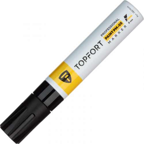 Маркер промышленный TOPFORT Paint для универсальной маркировки черный (8 мм) предназначен для промышленной непрозрачной маркировки металла, стекла, пластика, дерева, резины, камня, картона, кирпича, текстиля, кожи (материал), бумаги, бетона. Краска содержит высококонцентрированный пигмент, хорошо ложится на гладкие и шероховатые поверхности. Может применяться для письма на жирных, пыльных, грязных поверхностях. После высыхания лаковые чернила устойчивы к воздействию света, атмосферных осадков, смазочных материалов, механическому истиранию. Цвет чернил - черный, диаметр пишущего узла - 8 мм. Размеры маркера: диаметр 25 мм, длина 157 мм. Особенности: - Краска на нитро-основе РМ-05 (Великобритания). - Без ксилола и толуола. - Устойчивый к износу усиленный акриловый широкий скошенный наконечник (Япония). - Толщина линии 8 мм. - Материал корпуса - алюминий. - Клапанный механизм пишущего узла исключает растекание и разбрызгивание краски, преждевременное пересыхание маркера. - Температурный режим использования : от 0 до +40 °С. - Температурный режим хранения: от 0 до +60 °С. - Температурная устойчивость надписи: от -60 до +350 °С. Инструкция по применению: 1. Перед использованием интенсивно встряхнуть с закрытым колпачком. 2. Снимите колпачок, прижмите наконечник к поверхности, надавите до упора и удерживайте пока не проступит краска. 3. Применять после того как убедитесь, что наконечник полностью пропитан краской исходного цвета. Избегайте чрезмерного давления на наконечник при дальнейшем использовании. Предостережения: плотно закрывайте колпачок после применения, держать маркер вдали от источников тепла и воспламенения.