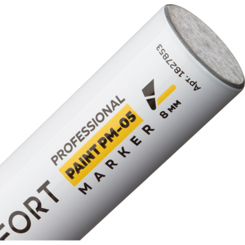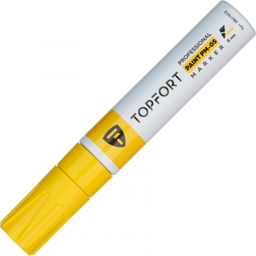 Маркер промышленный TOPFORT Paint для универсальной маркировки желтый (8 мм) предназначен для промышленной непрозрачной маркировки металла, стекла, пластика, дерева, резины, камня, картона, кирпича, текстиля, кожи (материал), бумаги, бетона. Краска содержит высококонцентрированный пигмент, хорошо ложится на гладкие и шероховатые поверхности. Может применяться для письма на жирных, пыльных, грязных поверхностях. После высыхания лаковые чернила устойчивы к воздействию света, атмосферных осадков, смазочных материалов, механическому истиранию. Цвет чернил - желтый, диаметр пишущего узла - 8 мм. Размеры маркера: диаметр 25 мм, длина 157 мм. Особенности: - Краска на нитро-основе РМ-05 (Великобритания). - Без ксилола и толуола. - Устойчивый к износу усиленный акриловый широкий скошенный наконечник (Япония). - Толщина линии 8 мм. - Материал корпуса - алюминий. - Клапанный механизм пишущего узла исключает растекание и разбрызгивание краски, преждевременное пересыхание маркера. - Температурный режим использования : от 0 до +40 °С. - Температурный режим хранения: от 0 до +60 °С. - Температурная устойчивость надписи: от -60 до +350 °С. Инструкция по применению: 1. Перед использованием интенсивно встряхнуть с закрытым колпачком. 2. Снимите колпачок, прижмите наконечник к поверхности, надавите до упора и удерживайте пока не проступит краска. 3. Применять после того как убедитесь, что наконечник полностью пропитан краской исходного цвета. Избегайте чрезмерного давления на наконечник при дальнейшем использовании. Предостережения: плотно закрывайте колпачок после применения, держать маркер вдали от источников тепла и воспламенения.