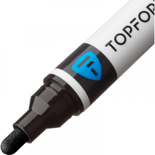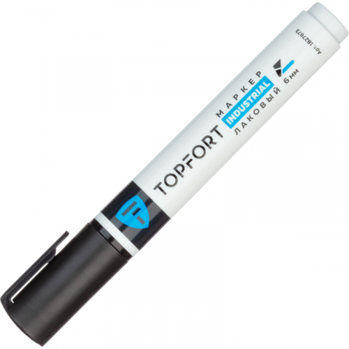 Маркер промышленный TOPFORT Industrial для универсальной маркировки черный (6 мм) предназначен для промышленной непрозрачной маркировки металла, стекла, пластика, дерева, резины, камня, картона, кирпича, текстиля, кожи (материал), бумаги, бетона. Краска содержит высококонцентрированный пигмент, хорошо ложится на гладкие и шероховатые поверхности. Может применяться для письма на жирных, пыльных, грязных поверхностях. После высыхания лаковые чернила устойчивы к воздействию света, атмосферных осадков, смазочных материалов, механическому истиранию. Создает стойкую линию толщиной 6 мм. Длина маркера - 142 мм. Цвет чернил : черный. Особенности: - Краска на усиленной нитро-основе РМ-14 (Великобритания). Без ксилола и толуола. - Устойчивый к износу усиленный акриловый круглый наконечник (Япония). - Толщина линии 6 мм. - Материал корпуса - алюминий. - Температурный режим использования : от 0 до +40 °С. - Температурный режим хранения: от 0 до +60 °С. - Температурная устойчивость надписи: от -60 до +350 °С. Инструкция по применению: 1. Перед использованием интенсивно встряхните маркер с закрытым колпачком. 2. Снимите колпачок, прижмите наконечник к поверхности, надавите до упора и удерживайте пока не проступит краска. 3. Применять после того как убедитесь, что наконечник полностью пропитан краской исходного цвета. Избегайте чрезмерного давления на наконечник при дальнейшем использовании. Предостережения: плотно закрывайте колпачок после применения, держать маркер вдали от источников тепла и воспламенения.