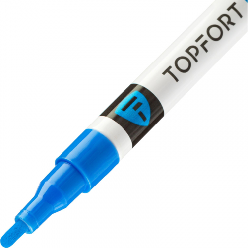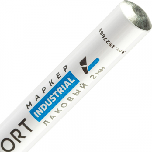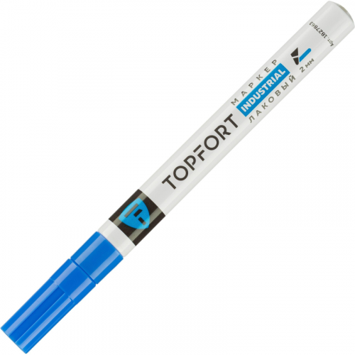 Маркер промышленный TOPFORT Industrial для универсальной маркировки синий (2 мм) предназначен для промышленной непрозрачной маркировки металла, стекла, пластика, дерева, резины, камня, картона, кирпича, текстиля, кожи (материал), бумаги, бетона. Краска содержит высококонцентрированный пигмент, хорошо ложится на гладкие и шероховатые поверхности. Может применяться для письма на жирных, пыльных, грязных поверхностях. После высыхания лаковые чернила устойчивы к воздействию света, атмосферных осадков, смазочных материалов, механическому истиранию. Создает стойкую линию толщиной 2 мм. Длина маркера - 130 мм. Цвет чернил : синий. Особенности: - Краска на усиленной нитро-основе РМ-14 (Великобритания). Без ксилола и толуола. - Устойчивый к износу усиленный акриловый круглый наконечник (Япония). - Толщина линии 2 мм. - Материал корпуса - алюминий. - Температурный режим использования : от 0 до +40 °С. - Температурный режим хранения: от 0 до +60 °С. - Температурная устойчивость надписи: от -60 до +350 °С. Инструкция по применению: 1. Перед использованием интенсивно встряхните маркер с закрытым колпачком. 2. Снимите колпачок, прижмите наконечник к поверхности, надавите до упора и удерживайте пока не проступит краска. 3. Применять после того как убедитесь, что наконечник полностью пропитан краской исходного цвета. Избегайте чрезмерного давления на наконечник при дальнейшем использовании. Предостережения: плотно закрывайте колпачок после применения, держать маркер вдали от источников тепла и воспламенения.