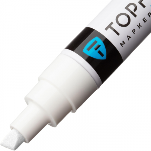 Маркер промышленный TOPFORT Industrial для универсальной маркировки белый (8 мм) предназначен для промышленной непрозрачной маркировки металла, стекла, пластика, дерева, резины, камня, картона, кирпича, текстиля, кожи (материал), бумаги, бетона. Краска содержит высококонцентрированный пигмент, хорошо ложится на гладкие и шероховатые поверхности. Может применяться для письма на жирных, пыльных, грязных поверхностях. После высыхания лаковые чернила устойчивы к воздействию света, атмосферных осадков, смазочных материалов, механическому истиранию. Создает стойкую линию толщиной 8 мм. Длина маркера - 157 мм. Цвет чернил : белый. Особенности: - Краска на усиленной нитро-основе РМ-14 (Великобритания). Без ксилола и толуола. - Устойчивый к износу усиленный акриловый широкий скошенный наконечник (Япония). - Толщина линии 8 мм. - Материал корпуса - алюминий. - Температурный режим использования : от 0 до +40 °С. - Температурный режим хранения: от 0 до +60 °С. - Температурная устойчивость надписи: от -60 до +350 °С. Инструкция по применению: 1. Перед использованием интенсивно встряхните маркер с закрытым колпачком. 2. Снимите колпачок, прижмите наконечник к поверхности, надавите до упора и удерживайте пока не проступит краска. 3. Применять после того как убедитесь, что наконечник полностью пропитан краской исходного цвета. Избегайте чрезмерного давления на наконечник при дальнейшем использовании. Предостережения: плотно закрывайте колпачок после применения, держать маркер вдали от источников тепла и воспламенения.