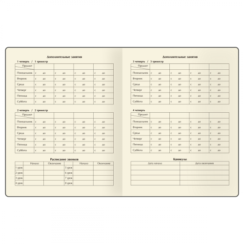 Дневник школьный BG "Full moon" в твёрдом переплёте – главный помощник школьника в планировании учебного времени и отслеживания успеваемости, подходит для учеников 1-11 классов. Изделие состоит из 48 листов тонированной бумаги плотностью 70 г/м2. Печать блока в 1 краску. Тип скрепления – сшивка. Дневник рассчитан на 8 уроков в день. В справочном материале собраны основные подсказки для ученика.