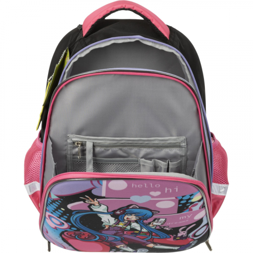 Рюкзак Комус Класс Rainbow ANIME GAME - эргономичный и вместительный рюкзак для переноса учебных материалов. Предназначается для учениц дошкольных и младших классов. Рюкзак с габаритами 390x300x170 сделан из полиэстера. Имеет два просторных отделения с тремя карманами. Его дизайн выполнен в розовом и черном цветах с изображением персонажа аниме. Рюкзак относится к категории ?ортопедические?, благодаря чему снимает нагрузку с плеч ребенка и равномерно распределяет ее по всей спине. Его объем составляет 18 литров при собственном весе 700 г. Включает элементы светоотражения. Рюкзак Комус Класс Rainbow ANIME GAME - это надежность и удобство в использовании на каждый день!