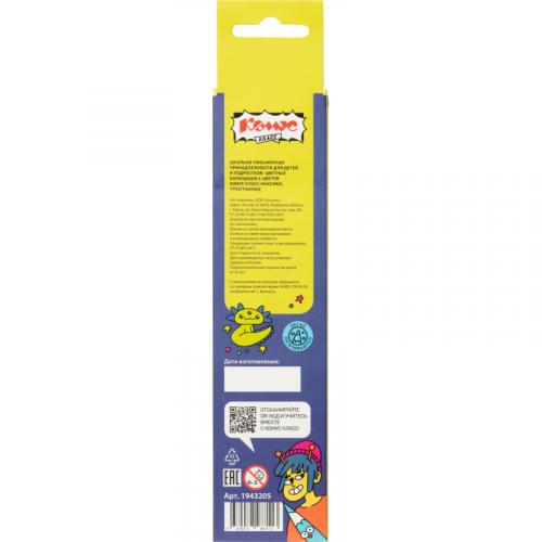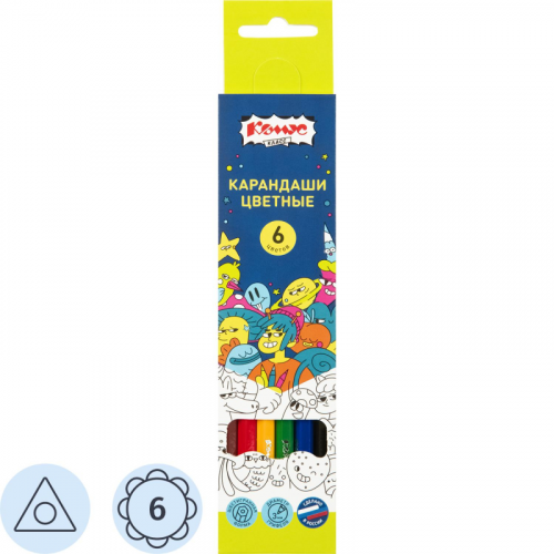 Карандаши цветные Комус Класс Максики 6 карандашей 6 цветов трёхгранные Цветные карандаши Комус Класс Максики подходят для школ, художественных кружков, занятий рисованием и домашнего использования. Трёхгранный корпус диаметром 7 мм обеспечивает удобство при использовании. Карандаш длиной 175 мм подходит для детей любого возраста. Диаметр грифеля - 3 мм. Грифель толстый, мягкий и плавно рисует, не царапая бумагу. Упаковка картонная коробка с европодвесом удобна для хранения и переноски. В наборе 6 шт. Количество цветов - 6. Тип упаковки - картонная коробка с европодвесом. Материал корпуса - дерево. Размер упаковки - 45x8x215 мм. Продукт применяется для рисования и развития творческих способностей детей.