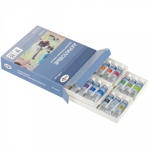 Набор акриловых красок ГАММА серии «Студия» предназначен для художественно-живописных и декоративно-прикладных работ. В упаковке 35 цветов. Объём тубы — 18 мл.