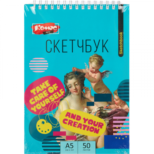 Скетчбук для рисунка, графики и каллиграфии Комус Арт 148x207 50 листов Скетчбук для рисования Комус Арт 148x207 миллиметров 50 листов на гребне. Скетчбук предназначен для художников и студентов, которые ищут качественную основу для своих графических работ и рисунков. Он может быть использован в образовательных учреждениях, на мастер-классах, а также в качестве инструмента для личного творчества. Бумага в скетчбуке обладает плотностью 100 грамм на квадратный метр, что делает её подходящей для различных техник рисования. Такая плотность бумаги позволяет избежать просачивания краски на обратную сторону листа, что обеспечивает чистоту и аккуратность работ. Скетчбук не имеет твёрдой обложки, что делает его более гибким и удобным для использования. Крепление на гребне позволяет легко переворачивать страницы и открывать его на любом развороте. Это свойство особенно удобно при рисовании больших форматов, а также при необходимости демонстрации работы. Белый цвет блока обеспечивает отличную контрастность с любыми цветами и оттенками, делая каждое произведение более выразительным. Скетчбук Комус Арт подойдёт для начинающих художников. Он станет надёжным помощником в творческом процессе и позволит легко реализовать любые идеи на бумаге.