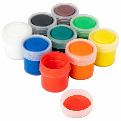 Разбавляются водой (не больше 10% от объема баночки). Обладают высокой кроющей способностью. 9 ярких и насыщенных цветов: белый, желтый, красный, зеленый, синий, черный, желто-зеленый, оранжевый, коричневый.
