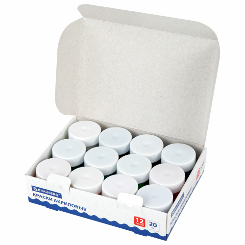 Краски акриловые для рисования и творчества 12 цветов по 20 мл, BRAUBERG, 192564