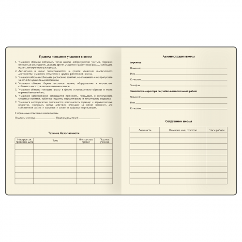 Твёрдый переплёт гарантирует, что дневник прослужит в течение всего учебного года, сохранив внешний вид. Внутренний блок состоит из 48 листов тонированной офсетной бумаги плотностью 70 г/м2. Печать блока в 1 краску. Учебный день рассчитан на 8 уроков. В дневнике школьник обнаружит справочные материалы, которые помогут быстро найти ответы на вопросы и закрепить знания.