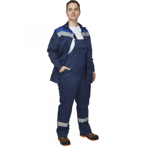 Костюм рабочий летний женский л16-КПК с СОП синий/васильковый (размер 60-62, рост 158-164 см). Куртка застегивается на пуговицы с потайной застежкой, по линии талии размещена регулируемая кулиса. Оснащен световозвращающей полосой шириной 5 см. Костюм изготовлен из смесовой ткани плотностью 190 г/кв.м. с водоотталкивающей пропиткой (20% хлопок, 80% полиэфир). Размер 60-62, рассчитан на рост 158-164 см. Сферы применения: сельское хозяйство, логистика, легкая промышленность, строительство, озеленение. Коллекция спецодежды л16 представлена женскими комплектами куртка и полукомбинезон л16-КПК-жен, а также мужскими брюками л16-БР, полукомбинезонами л16-ПК.