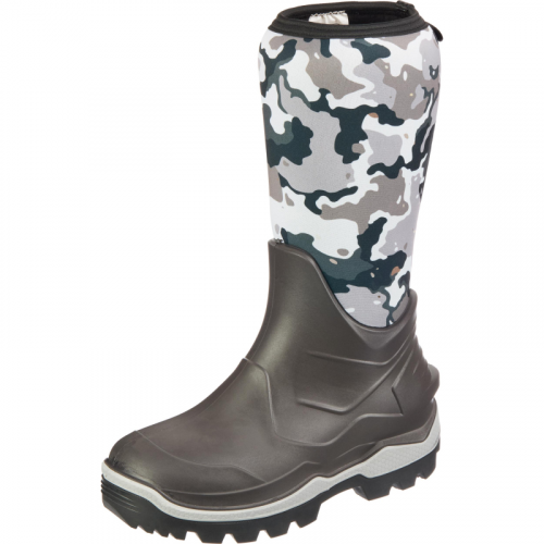 Сапоги мужские Harweld Frost С950 ПУ-нитрил из неопрена утеплённые чёрные/камуфляжные размер 44Рекомендованы для рыбалки, охоты, туризма, путешествий и активного зимнего отдыха.Верх изготовлен из полиуретана с чулком из неопрена. Галоша из вспененного полиуретана обеспечивает водонепроницаемость. Внутренняя часть сапога утеплена флисом и натуральным овечьим мехом в области галоши. Материал лёгкий, прочный и мягкий. Метод прилива полиуретана к чулку повышает теплоизоляцию. Длина стельки: 287.5 мм. Высота голенища: 425 + 5 мм.Подошва состоит из полиуретана и нитрильной резины. Крепление клеевое. рисунок протектора самоочищается от снега и грязи при ходьбе и обеспечивает устойчивость на скользких и мокрых поверхностях. В пяточной части предусмотрена специальная шпора для удобного и быстрого снятия сапога. Малый вес и уникальная система амортизации 'Light Step' в подошве уменьшит нагрузку на ноги и повысят функциональность при длительных путешествиях.Пузырчатые углубления - это технологические отверстия. Согласно ТУ 15.20.11-019-73734543-2021, возникновение пузырьков на поверхности технологически допускается и никак не влияет на целостность обуви. Сапоги изготовлены из вспененного полиуретана, и именно благодаря пузырькам воздуха они становится такими тёплыми и мягкими.Сапоги подходят для зимы в климатических поясах III, IV и 'особый'. Широкий раструб с утягивающей резинкой предотвращает попадание снега.Модель соответствует ГОСТ 26167-2005 и ТР ТС 017/2011. Гарантийный срок: 3 года.Рекомендуется заправлять брюки в голенище для защиты от снега.