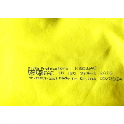 Перчатки многоразовые КЩС латексные MitRa Professional с хлопковым напылением желтые (размер 9.5-10, XL). Средства индивидуальной защиты рук: перчатки из натурального латекса, КЩС тип 2 с хлопковым напылением. Толщина 0.35 мм. Одна пара в упаковке. Продукция соответствует требованиям ТР ТС 019/2011 ?О безопасности средств индивидуальной защиты?. Продукция изготовлена в соответствии с EN ISO 374-1: 2016 ?Перчатки для защиты от химических веществ и микроорганизмов?. Область применения: предназначены для предохранения кожи рук при проведении различных работ и уборок; для защиты рук от химических факторов (от растворов кислот концентрацией 80% (по серной кислоте), от растворов щелочей концентрацией 40% (по гидроокиси натрия)). Подходят для многоразового использования.