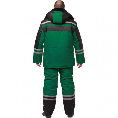 Костюм рабочий зимний мужской з03-КПК с СОП зеленый/черный (размер 44-46, рост 170-176). Рекомендован для использования в сельском хозяйстве, логистике, легкой промышленности, строительстве. Изготовлен из смесовой ткани с водоотталкивающей пропиткой (80% полиэстер, 20% хлопок), плотность ткани - 190 г/кв.м. Утеплитель из синтепона, плотностью - 360 г/кв.м (основа) 3 слоя по 120 г/кв.м и 240 г/кв.м (руки/ноги) 2 слоя по 120 г/кв.м. Материал подкладки - 100% полиэстер. Защитные свойства: -Защищает от общих производственных загрязнений. -Защищает от пониженных температур. Светоотражающая полоса размещена на груди, спине, рукавах, а также внизу полукомбинезона. Куртка с центральной застежкой на молнию, двумя ветрозащитными клапанами, съемным утепленным капюшоном, нижними прорезными и верхними накладными карманами. Полукомбинезон классического покроя с усилением в области колен и молниями по низу боковых швов. Соответствует ГОСТ 12. 4. 303-2016. размер Цвет на изображении товара в интернет-магазине или в печатном каталоге может отличаться от оригинала из-за особенностей цветопередачи монитора.