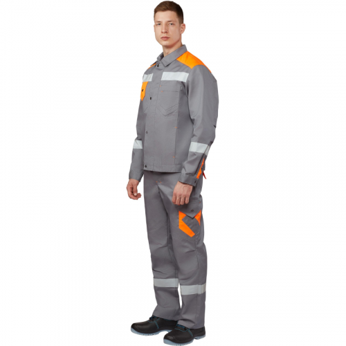 Спецодежда летняя костюм мужской л21-КБР состоит из куртки и брюк (размер 56-58, рост 182-188 см). Изготовлен из смесовой ткани (65% полиэстер, 35% хлопок) плотностью 240 г/кв.м с водоотталкивающей пропиткой (ВО). Светоотражающая полоса шириной 50 мм размещена на груди, спине, рукавах, а также внизу брюк. Куртка c застежкой на молнию и кнопки. На куртке два верхних накладных кармана. Рукава с налокотниками и манжетами. Ширина пояса куртки регулируется кнопками. Брюки прямого силуэта с застежкой на пуговицы. На передней половине брюк расположены два накладных кармана со скошенным входом. На брюках сзади 2 накладных кармана, один из которых на кнопке, а также боковой накладной карман на кнопке. Весь костюм сшит контрастными нитками белого цвета, двойной строчкой. Костюм предназначен для защиты от общих производственных загрязнений и механических воздействий. ГОСТ 12.4.280-2014, ТР ТС 019/2011. Сферы применения: сельское хозяйство, логистика, легкая промышленность, строительство, тяжелая промышленность.Коллекция рабочей одежды л21 представлена двумя видами комплектов: куртка и полукомбинезон л21-КПК и куртка и брюки Л21-КБР. Цвет на изображении товара может отличаться от оригинала из-за особенностей цветопередачи монитора.ЗАКОНОДАТЕЛЬНЫЕ И ТЕХНИЧЕСКИЕ ДОКУМЕНТЫ: