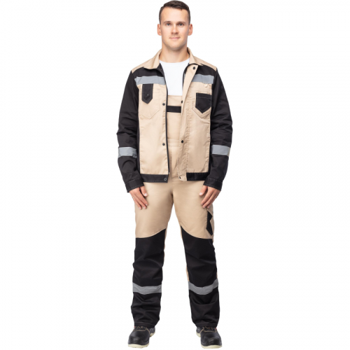 Костюм рабочий летний муж л21-КПК беж/черн. (р.44-46) 182-188