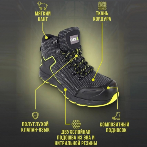 Ботинки рабочие Line X-PRO ЭВА-резина из текстиля с композитным подноском серый/черный (размер 40). Подойдут как для мужчин, так и для женщин. Обеспечивают безопасность и комфорт на промышленных предприятиях, особенно при работе в условиях повышенных рисков механических повреждений. Изготовление обуви "PRO" осуществляется с использованием передовых технологий и материалов высокого качества. Ботинки 'X-PRO' изготавливается из специального текстильного верха Кордура отделкой из современных обувных материалов. Двухслойная подошва устойчива к воздействию химических факторов - нефти, нефтепродуктов, растворов КЩС до 20%. Слой из ЭВА и нитрильной резины и пятка обуви обладает амортизирующими свойствами, гасит ударные нагрузки, а также обеспечивает легкость и комфортность обуви. Ходовой слой изготовлен из износостойкой нитрильной резины.Подошва, имеет свойства улучшенного сопротивления скольжению, стойкостью к деформациям и истиранию. Рисунок протектора подошвы обеспечивает защиту от скольжения по зажиренным и скользким поверхностям. Подошва обладает эффектом самоочищения от грязи. Для защиты от ударов, в некоторых моделей обуви линии 'PRO' применяется внутренний защитный носок из композита ударной прочностью 200 Дж (Мун 200) с прокладкой, препятствующей надавливанию при ходьбе. Полуглухой клапан-язык защищает от попадания внутрь мелких предметов, брызг, камней и пыли. Мягкий кант обеспечивает комфорт и защищает ногу от боковых ударов. Внутренняя встроенная стелька из легкого синтетического материала (кевлар) гарантирует защиту от проколов и порезов (до 1200Н). Вкладная стелька обеспечивает поглощение влаги и придает комфорт.Защищают от общих производственных загрязнений, механических повреждений и ударов. Стандарты: ГОСТ 28507-99, ТР ТС 019/2011.Цвет на изображении товара в интернет-магазине или в печатном каталоге может отличаться от оригинала из-за особенностей цветопередачи монитора.