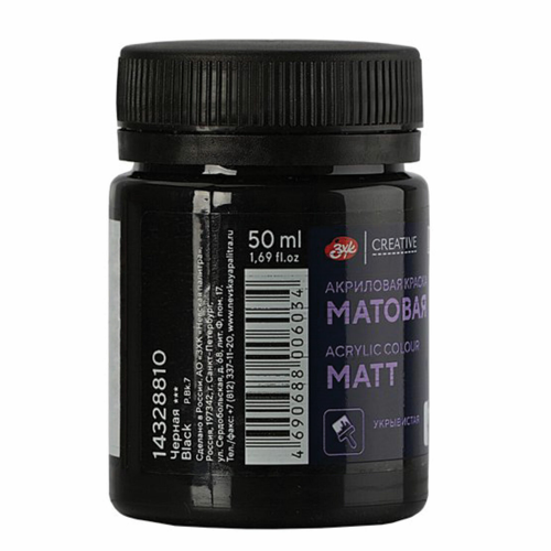 Краска акриловая матовая "Декола", банка 50мл, черная, 14328810
