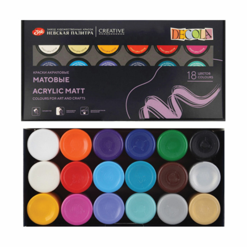 Краски акриловые матовые "Декола", 18 цветов по 20мл, в банках, 143412150
