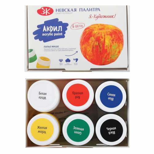 Краски акриловые глянцевые "Я-Художник!", 6 цветов по 15мл, в банках, 229411542