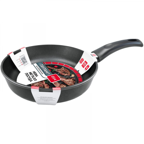 Сковорода антипригарная литая 24 см Титан ТМ НМП - это универсальное кухонное приспособление, которое обладает рядом преимуществ. Во-первых, она имеет высокие борта и большую полезную площадь, что обеспечивает удобство и эффективность при приготовлении различных блюд. Особенностью сковороды также является многослойная антипригарная система, в основе которой лежат материалы высокого качества европейского производства. Это обеспечивает повышенную износостойкость покрытия. Сковорода сохраняет свои антипригарные качества на протяжении длительного времени. Еще одним важным плюсом данного изделия является экологичность и безопасность покрытия. При его изготовлении не использовались вредные вещества, в частности перфтороктановая кислота (PFOA). Это гарантирует безопасность для здоровья и окружающей среды при приготовлении пищи. Сковорода антипригарная литая 24 см Титан ТМ НМП подходит для использования на всех типах плит, за исключением индукционных. Она станет незаменимым помощником на кухне благодаря своей универсальности, обеспечивая быстрое и качественное приготовление пищи.