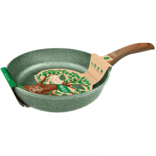 Сковорода антипригарная литая 26см Eco Way ТМ НМП выполнена в натуральном зеленом цвете и комплектуется эргономичной ручкой с имитацией дерева. Благодаря универсальному корпусу и высоким стенкам подходит для основных типов приготовления. Корпус сковороды выполнен из высококачественного пищевого сплава алюминия, такой корпус равномерно нагревается и не деформируется со временем. Антипригарное покрытие на водно-кремниевой основе усиленное минеральными частицами отличается высокой износостойкостью. Оно позволяет готовить с минимальным количеством масла, сохраняя вкус и пользу приготовленных блюд. Изделие подходит для всех типов плит, кроме индукционных.