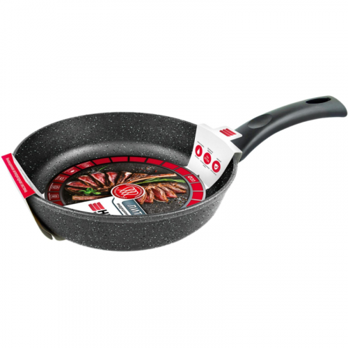 Сковорода антипригарная литая 20 см индукция Гранит ТМ НМП предназначена для ежедневного использования. Литой алюминиевый корпус обеспечивает равномерный нагрев и не подвержен деформации. Многослойное антипригарное покрытие с эффектом натурального камня позволяет готовить с минимальным количеством масла, сохраняя вкус продуктов. Сковорода выполнена с использованием современной технологии 'Full Induction', что обеспечивает быстрый разогрев до оптимальной температуры для жарки. Дно сковороды оснащено цельным ферромагнитным диском, совместимым со всеми типами индукционных плит. Эргономичная ручка из бакелита удобна в использовании и не нагревается в процессе приготовления. Плюсы сковороды: - равномерный нагрев; - минимальное количество масла при готовке; - сохранение вкусовых качеств продуктов; - быстрый разогрев до оптимальной температуры; - удобство хранения благодаря съемной ручке.