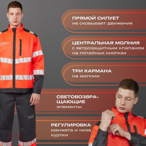 Куртка рабочая летняя мужская Равелин с СОП красная/графит (размер 56-58, рост 170-176). Предназначена для защиты от общих производственных загрязнений на промышленных предприятиях. Материал куртки: смесовая ткань (65% полиэфир, 35% хлопок) плотностью 240 г/кв. м. Она имеет масло- и водоотталкивающую пропитку, устойчива к истиранию и выцветанию. Защитные свойства:- Со - повышенной видимости Ми - от механических воздействий (от истираний) З - от общих производственных загрязнений.Куртка имеет прямой силуэт, не стесняющий движений. Регулировка ширины предусмотрена с помощью пат на кнопках по низу изделия. Манжеты также регулируются кнопками. Эластичные вставки отсутствуют.Модель оснащена тремя прорезными карманами с застежкой на молнию: один нагрудный и два на нижней части. Воротник выполнен в форме стойки, что обеспечивает защиту шеи. Капюшон в модели не предусмотрен. Куртка застегивается на молнию, дополненную ветрозащитным клапаном на потайных кнопках. Вентиляционные отверстия расположены в подмышечных впадинах с люверсами и в верхней части спины. Подкладка из сетки обеспечивает вентиляцию. Светоотражающие элементы выполнены в виде термопринтов на груди, спине, рукавах и по низу изделия. Светоотражающие элементы шириной 50 мм обеспечивают высокую видимость работника в темное время суток. Рекомендации по уходу: стирка при температуре не более 40С, без использования отбеливателей и химической чистки. Стандарты: ГОСТ 12.4.280-2014, ГОСТ 12.4.281-2021, ТР ТС 019/2011.