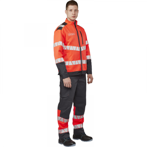 Куртка рабочая летняя мужская Равелин с СОП красная/графит (размер 60-62, рост 194-200). Предназначена для защиты от общих производственных загрязнений на промышленных предприятиях. Материал куртки: смесовая ткань (65% полиэфир, 35% хлопок) плотностью 240 г/кв. м. Она имеет масло- и водоотталкивающую пропитку, устойчива к истиранию и выцветанию. Защитные свойства:- Со - повышенной видимости Ми - от механических воздействий (от истираний) З - от общих производственных загрязнений.Куртка имеет прямой силуэт, не стесняющий движений. Регулировка ширины предусмотрена с помощью пат на кнопках по низу изделия. Манжеты также регулируются кнопками. Эластичные вставки отсутствуют.Модель оснащена тремя прорезными карманами с застежкой на молнию: один нагрудный и два на нижней части. Воротник выполнен в форме стойки, что обеспечивает защиту шеи. Капюшон в модели не предусмотрен. Куртка застегивается на молнию, дополненную ветрозащитным клапаном на потайных кнопках. Вентиляционные отверстия расположены в подмышечных впадинах с люверсами и в верхней части спины. Подкладка из сетки обеспечивает вентиляцию. Светоотражающие элементы выполнены в виде термопринтов на груди, спине, рукавах и по низу изделия. Светоотражающие элементы шириной 50 мм обеспечивают высокую видимость работника в темное время суток. Рекомендации по уходу: стирка при температуре не более 40С, без использования отбеливателей и химической чистки. Стандарты: ГОСТ 12.4.280-2014, ГОСТ 12.4.281-2021, ТР ТС 019/2011.