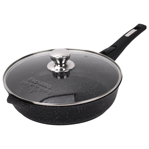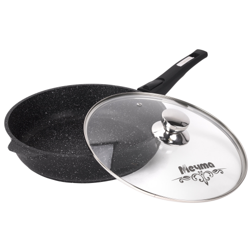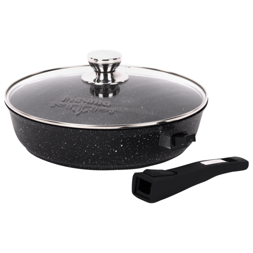 Сковорода 28 см, съемная soft-touch ручка, крышка, антипригарное покрытие, Мечта Гранит, с028802