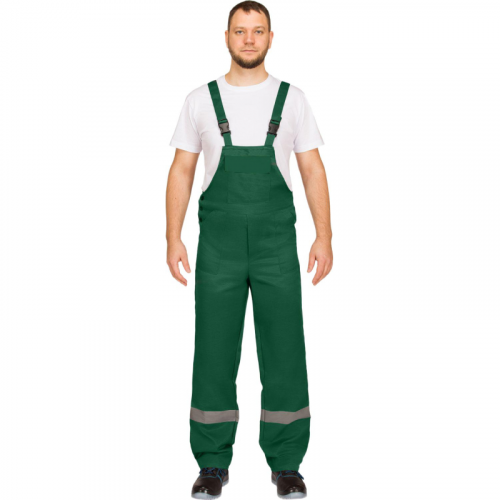 Костюм рабочий летний мужской л16-КПК с СОП зеленый/желтый (размер 48-50, рост 170-176) состоит из куртки и полукомбинезона. Изготовлен из смесовой ткани (80% полиэстер, 20% хлопок, плотность 190 г/кв.м.). Куртка и полукомбинезон оснащены светоотражающей полосой - 5 см. Полукомбинезон c накладными карманами, гульфиком на пуговицах, эластичной тесьмой по талии спинки и регулируемыми бретелями. Куртка прямого силуэта на пуговицах с контрастной кокеткой и тремя накладными карманами. Соответствует ГОСТ 12.4.280-2014, ТР ТС 019/2011. Сферы применения: сельское хозяйство, логистика, легкая промышленность, строительство, озеленение. Коллекция спецодежды л16 представлена комплектами куртка-брюки л16-КБР и куртка-полукомбинезон л16-КПК.