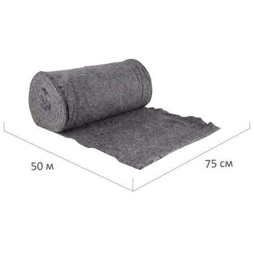 Полотно ХПП холстопрошивное ПЛОТНОЕ серое, 0.75х50 м, 180(±10) г/м2, шаг 2.5 мм, LAIMA Стандарт, 605541
