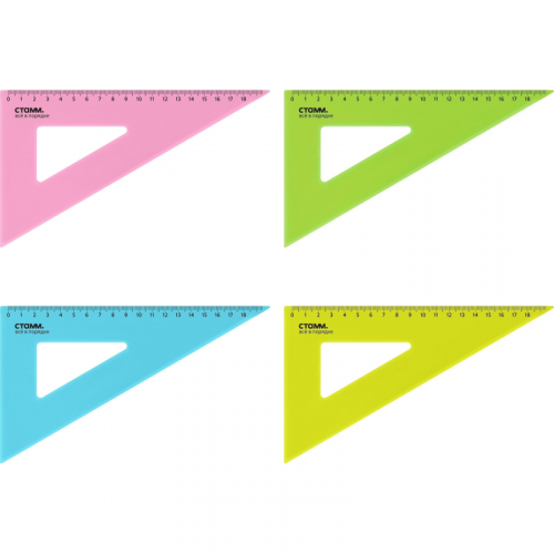 Треугольник Стамм Neon Cristal 18 см 90/60/30 градусов пластиковый в ассортименте Школьный пластиковый треугольник Neon Cristal. Длина треугольника 18 см. Углы 30, 60, 90 градусов. Внимание! Товар поставляется в нескольких вариантах цвета/дизайна (без возможности выбора).