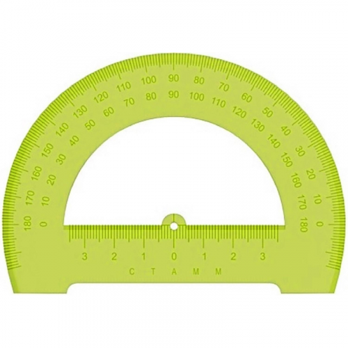 Транспортир Стамм Neon Cristal 180 градусов 12 см пластиковый в ассортименте Транспортир Neon Cristal изготовлен из пластика. Имеет 180-градусную шкалу. Нижняя часть представляет собой линейку длиной 12 см. Шкалы и логотип нанесены на транспортир с помощью термопечати. Предназначены для чертежных работ. В ассортименте 4 цвета. Внимание! Товар поставляется в нескольких вариантах цвета/дизайна (без возможности выбора).