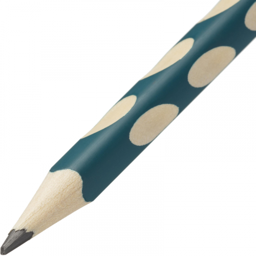 Чернографитный карандаш для правшей. Специальные углубления на корпусе карандаша, адаптированные для правшей, предотвращают скольжение пальцев при письме и фиксируют их в правильном положении. Это позволяет свести к минимуму необходимые усилия для удержания карандаша в руке. Специальная маркировка R на корпусе и красный цвет торца позволяют легко определить принадлежность для праворуких. Утолщенный грифель карандаша отличается особой яркостью и стойкостью к поломкам. Твердость НВ. Диаметр карандаша - 8 мм.