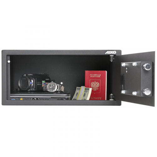Сейф гостиничный Aiko SH-20 EL предназначен для хранения бумажных документов в гостиничных номерах, дома, в офисе. - толщина лицевой панели - 2,8 мм; - толщина боковых стенок - 1,2 мм; - комплектуются электронным замком PLS-2.2 + аварийный мастер-ключ, работает от 1 элемента питания 9V типа 6LR61; - замок оснащен звуковыми и световыми индикаторами; - предусмотрено анкерное крепление к полу и стене. Дополнительные элементы (папки, кэшбоксы) в комплект сейфа не входят и заказываются отдельно.